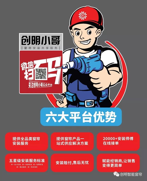 那创明小哥是什么呢?创明小哥是窗帘安装共享服务平台,充分解决窗帘安装痛点,致力于给客户提供五星级窗帘安装服务。