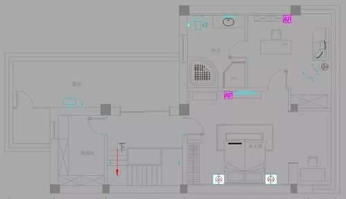 这层楼有一个露台、衣帽间、书房、女儿房。根据客户实际需求,部署的两个AP分别在书房和女儿房。书房的AP还可以兼顾卫生间区域。