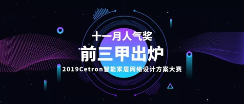 “千兆好网络”——2019Cetron智能家居网络设计方案大赛11月人气奖评选活动于本月13日10:00正式启动,并于16日0:00画上了圆满的句号。13篇入围案例角逐3个人气奖名额,吸引了近6000人参与投票,反响非常的热烈。