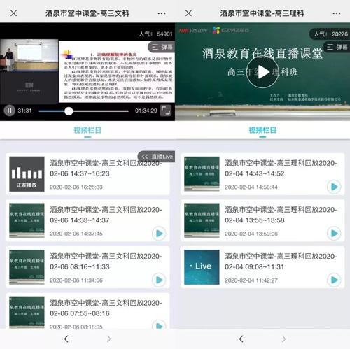 为了不影响高考复习进度,酒泉市教育局携手萤石云开设理科及文科视频直播课堂,组建高三骨干教师团队通过线上直播平台组织高三学生在家线上学习。虽停课,不停学。