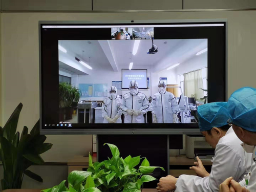 为此,在疫情的主要阵地,不仅有各科室精兵强将的身影,还配备了先进的仪器设备,实现专家与病人、专家与医务人员之间的“面对面”交流。