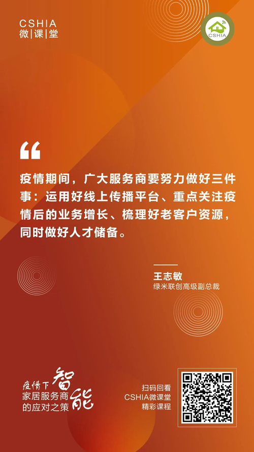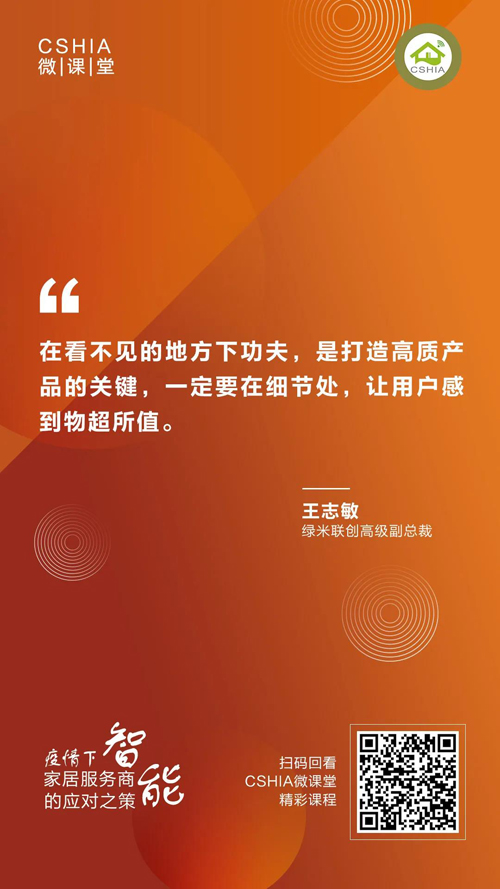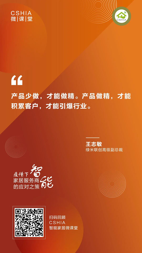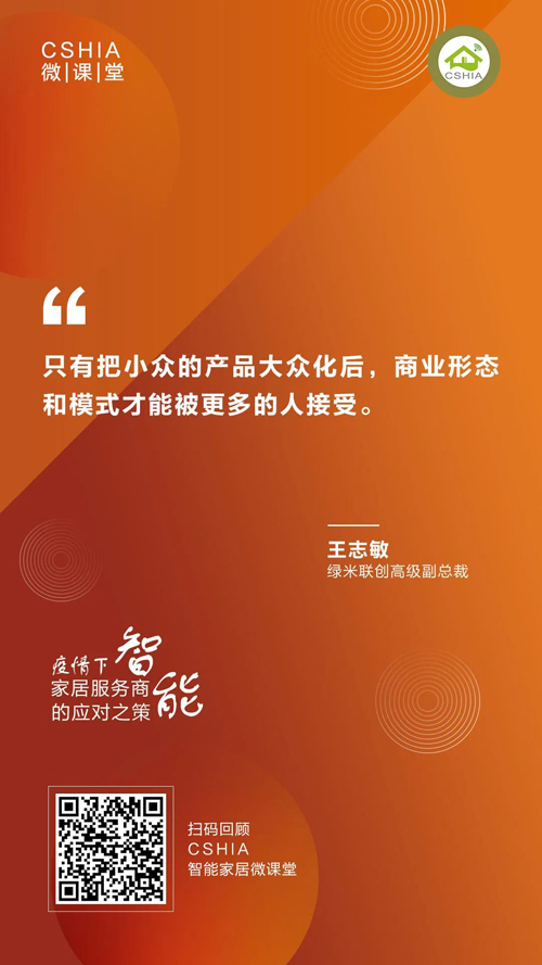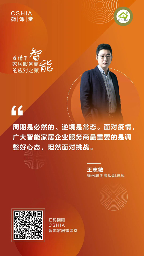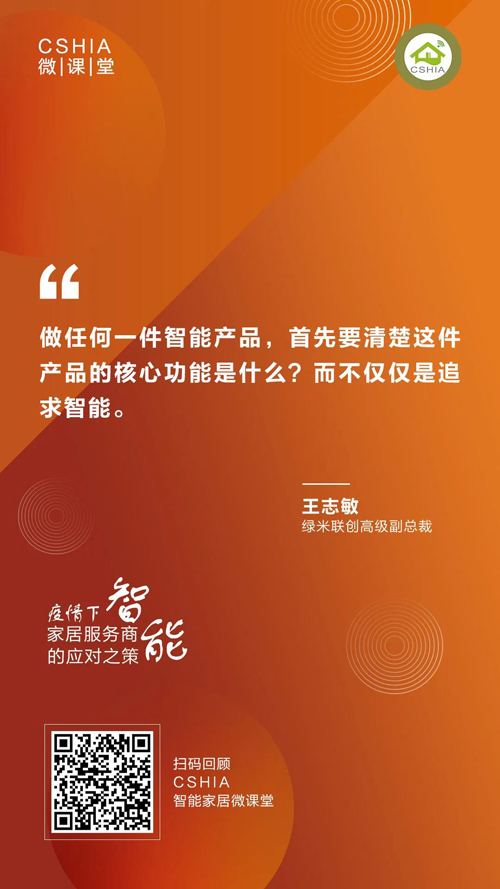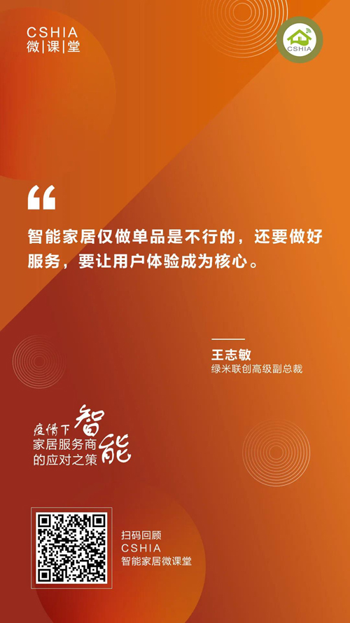 [导读] 2020年2月27日,CSHIA智能家居微课堂邀请绿米联创高级副总裁王志敏分享《疫情下智能家居服务商的应对之策》,面向智能家居行业伙伴进行在线直播!
