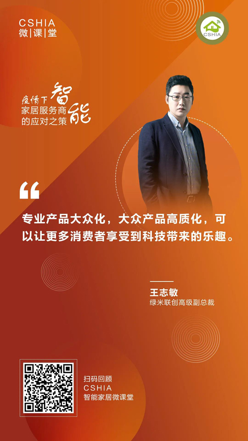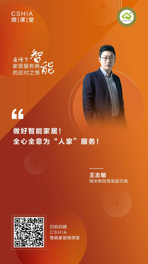 2020年2月27日,CSHIA智能家居微课堂邀请绿米联创高级副总裁王志敏分享《疫情下智能家居服务商的应对之策》,面向智能家居行业伙伴进行在线直播!