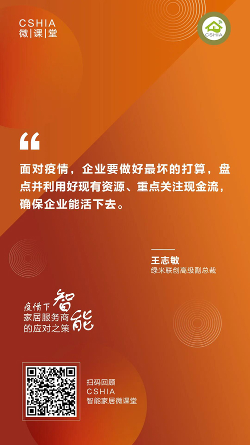 今天的CSHIA智能家居微课堂为大家整理了《疫情下智能家居服务商的应对之策》课程全要点金句,并为大家送上精彩课程与答疑环节的全程回放!