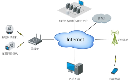 只要前端摄像机具备互联网接入条件,即可接入企业萤石云,可采用SD卡存储、萤石云存储