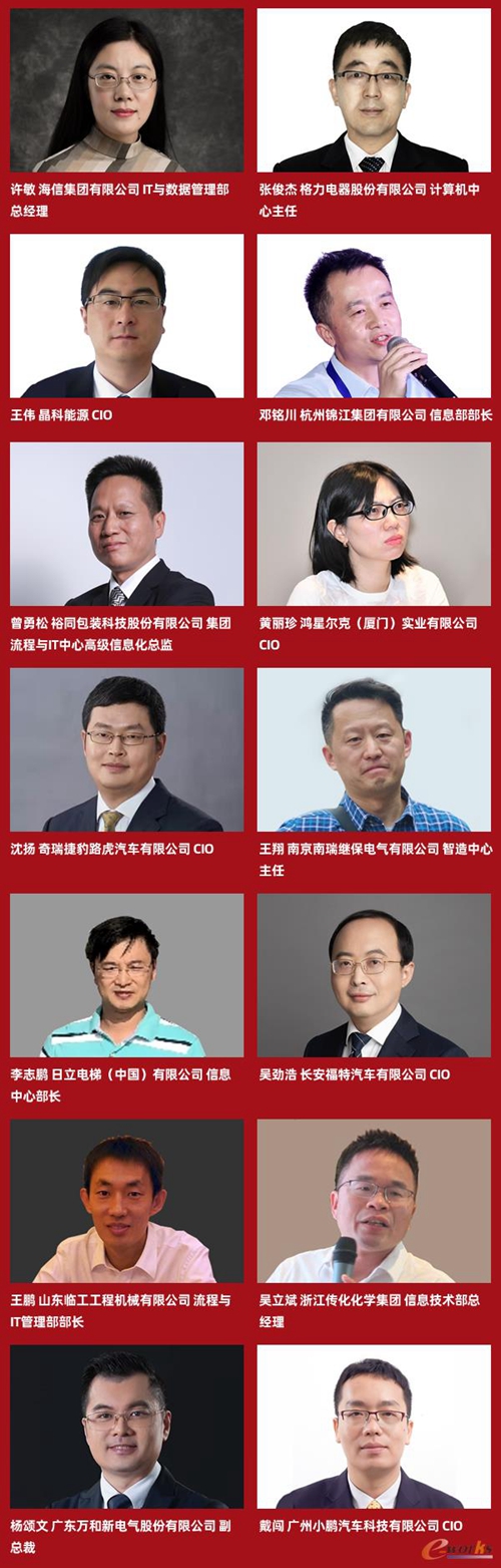 荣获“2019年度中国制造业卓越CIO”的分别是(排名不分先后):