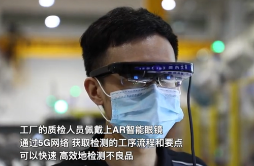 在传统的洗衣机生产过程中,产品需要在生产完成后才能发现不良问题,再进行维修或报废。而在5G场景下,质检人员可以佩戴AR智能眼镜,获取检测的工序流程和要点,通过显示的工序指令提示,进行分步质检,并且录入实时电子数据。