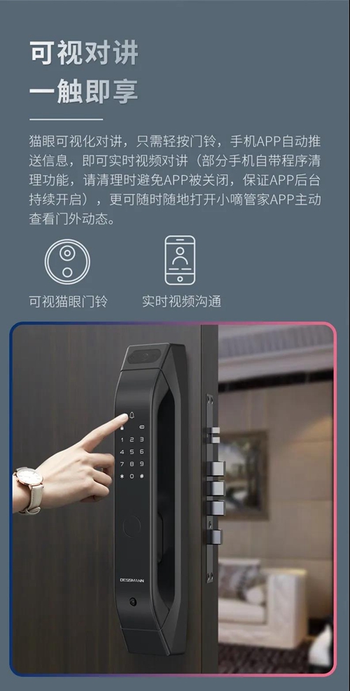 2020/07/13德施曼 [导读] 德施曼指纹锁Q5M产品介绍 德施曼指纹锁Q5M产品介绍 德施曼 智能家居 智能锁 免责声明:凡注明为其它来源的信息均转自其它平台,目的在于传递更多信息,并不代表本站观点及立场。若有侵权或异议请联系我们处理。