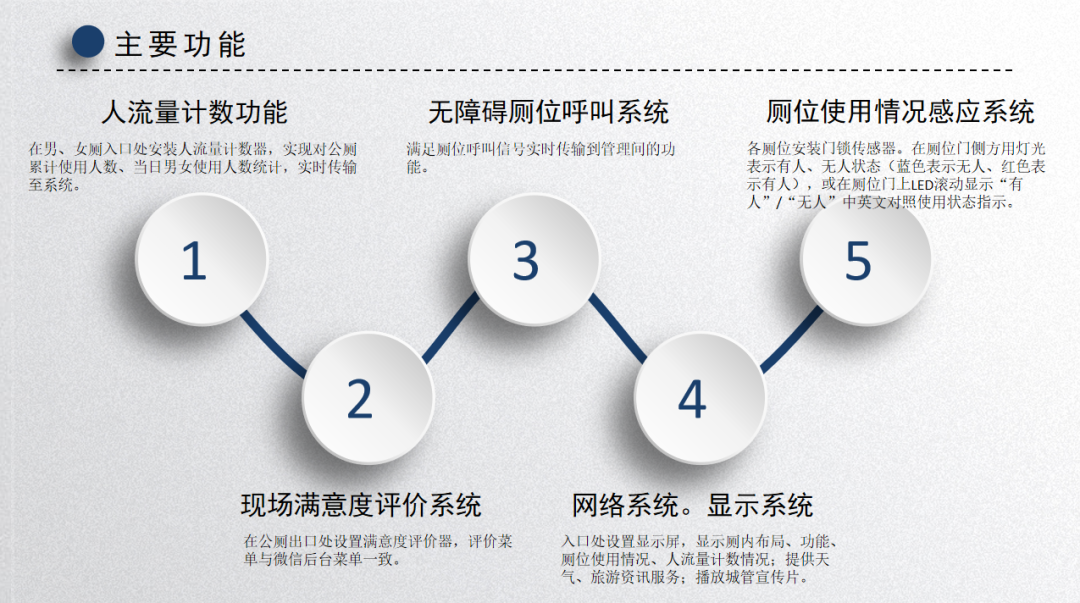 该项目位于南京市鼓楼区的石头城公园内,是一处六朝时期的著名遗迹,人流量大且每天来公园散步的居民也非常多,因此根据其特殊的地址位置以及功能需求,我们设计出独有的石头城智慧公厕系统,主要功能如下: