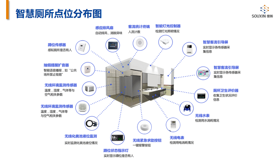 搜新智慧公厕,通过物联网、大数据等技术,将公厕的客流量、厕位空余量、环境质量、用水用电量等数据统一接入软件平台,今天为大家带来搜新智慧公厕的一个经典案例—南京石头城智慧公厕。