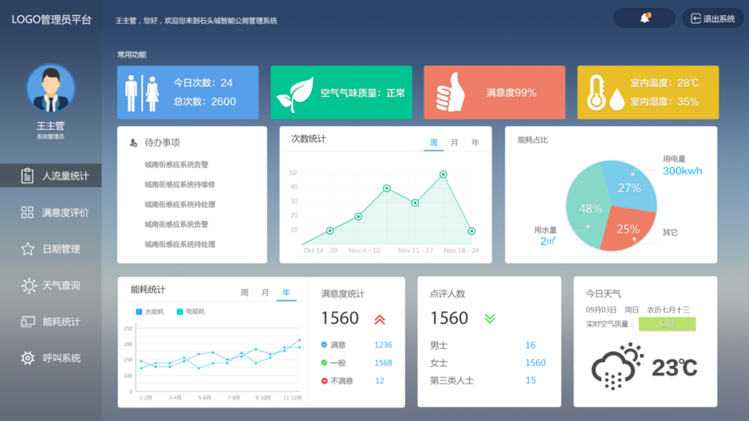 完善的智慧公厕后台管理系统,可以直观的看出整个公厕的运营情况: