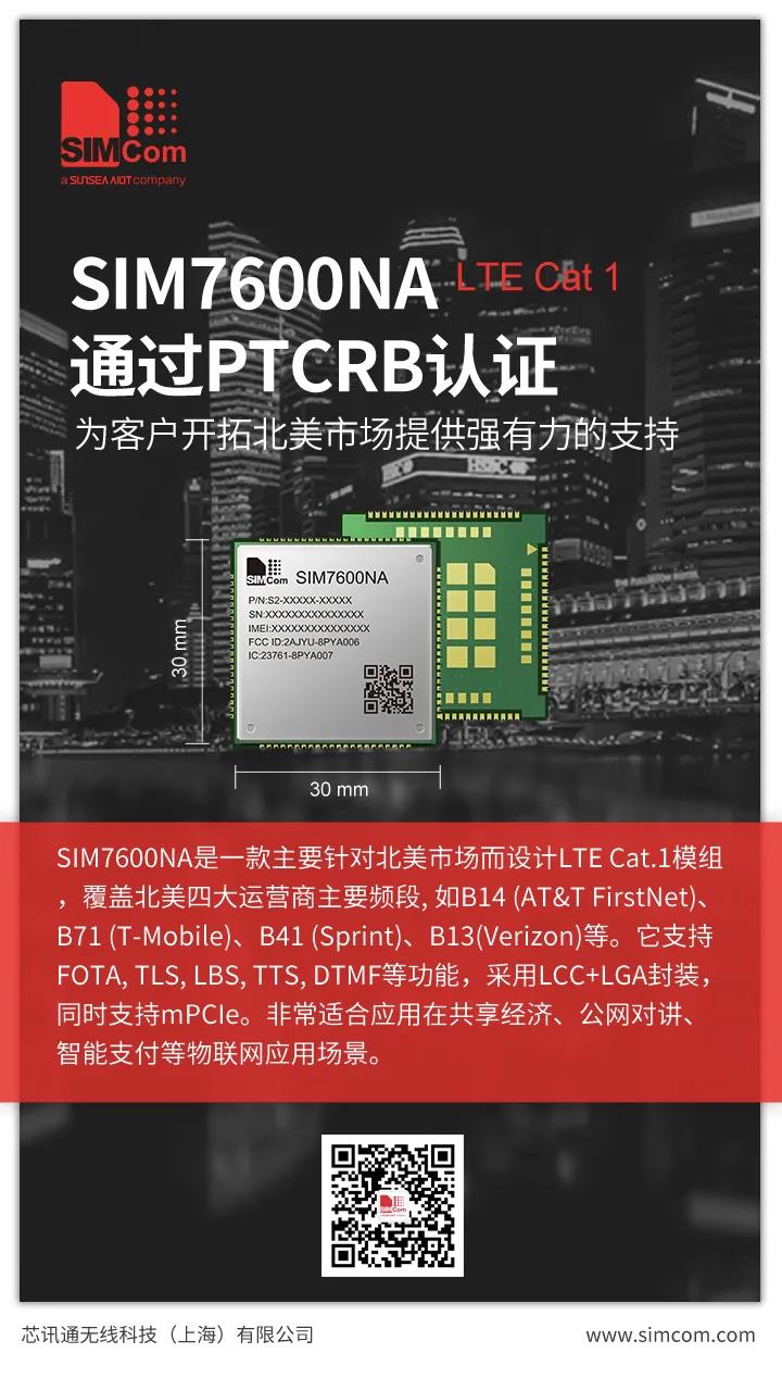 [导读] 继LTE Cat.4模组SIM7600NA-H通过PTCRB认证后,芯讯通(a SUNSEA AIoT company)又一款模组SIM7600NA也顺利通过PTCRB认证。这不仅证实了芯讯通(a SUNSEA AIoT company)模组在通信领域的高可靠性和稳定性,更为客户开拓北美市场提供了强有力的支持。
