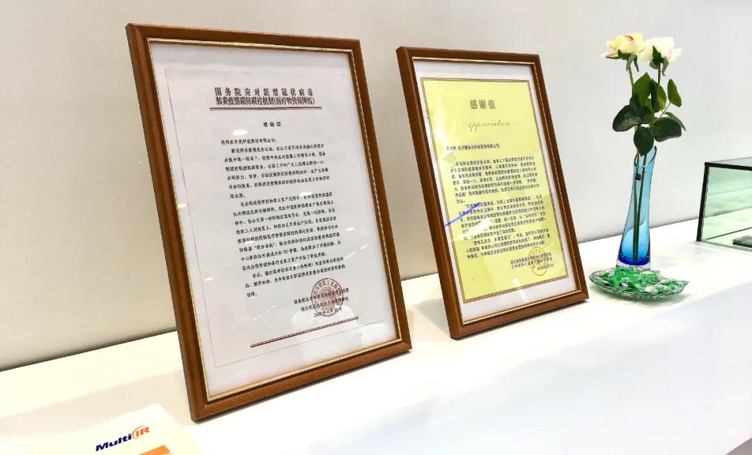 王强告知,麦乐克展台显眼处摆放的两个相框就是麦乐克在疫情之初响应国家号召、积极行动,受到国务院、浙江省政府给予的激励和表扬。当初麦乐克荣幸成为国家抗“疫”“联合会战”一员,在国家、政府部门的需求下,12小时内紧急复工,克服困难增产、扩产,不计成本全力供应国家所需。我们希望通过此行为时时刻刻激励自己做出更优质的产品,为客户提供更满意的服务!