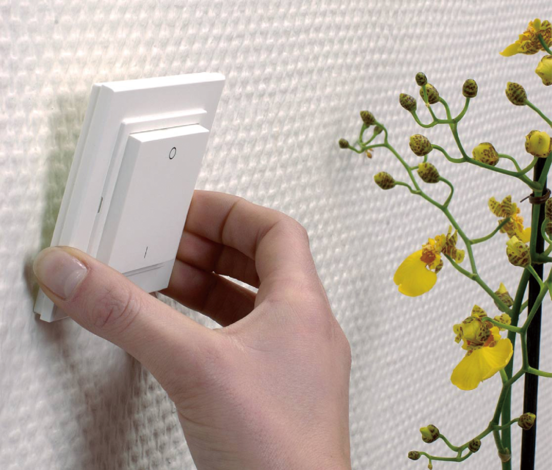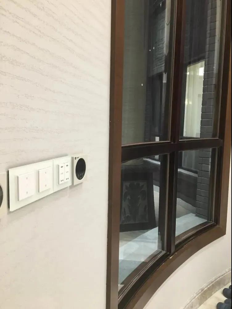 本项目为后期改造项目,在实现智能控制的前提下,不能破坏原有的装修,所以使用了采用德国EnOcean技术的无源无线开关,所有智能开关都可在装修后再选择位置固定,无需给开关开槽、布线、预留暗盒,也无需换电池。所有的灯光、电动窗帘都通过无源无线开关进行本地控制,并且业主还可以通过手机APP、若琪语音机器人进行多种方式的智能控制。
