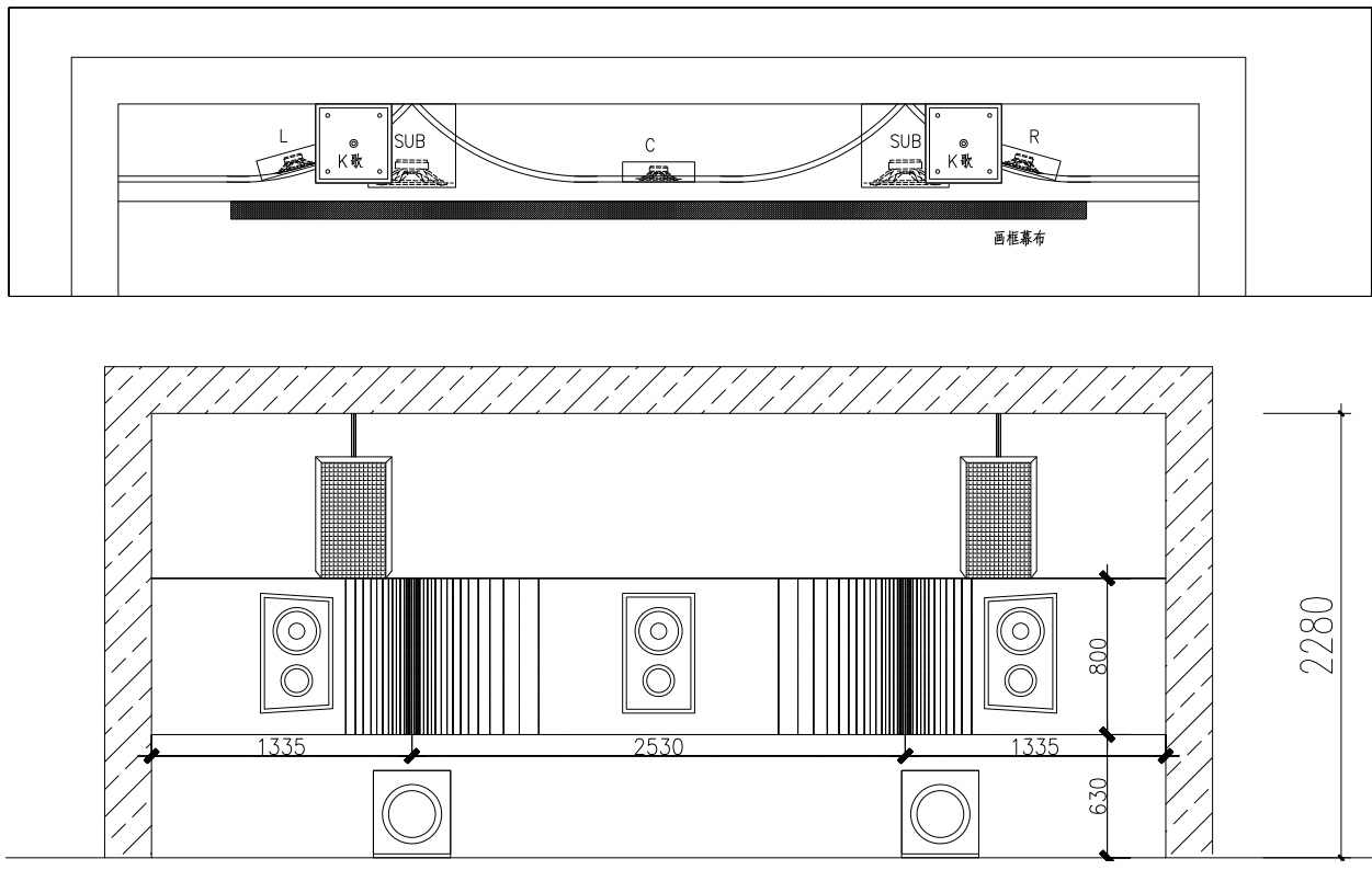 为满足业主对于K歌系统的要求,本次项目采用先前影音室的声学设计,而且在KTV方案中选择美国JBL品牌作为KTV音箱,它是专门为家庭娱乐设计的KES8120/KI110,其合理精确的分频设计可有效平衡完善各扬声器单元的不同特性,最终达到各频率平衡效果。