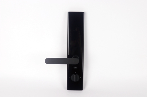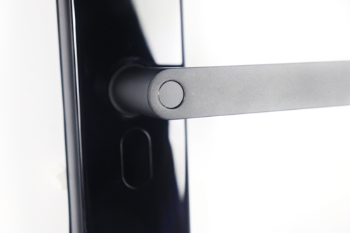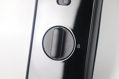 鹿客Classic 2S智能锁具有防猫眼开门设计,在把手下方拥有拨钮,红色表示锁定,当锁定拨钮时,内面板把手便无法下压解锁开门。