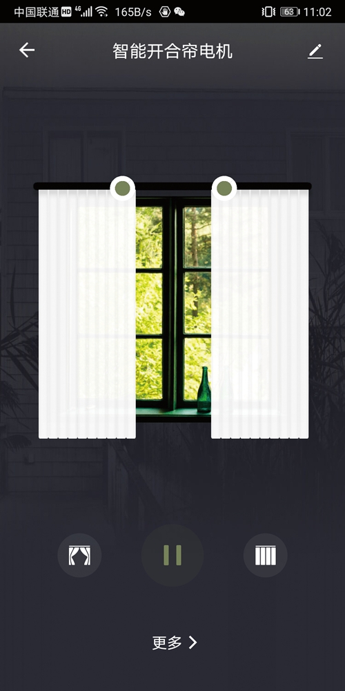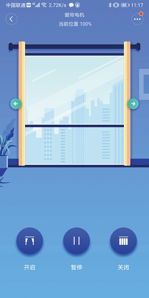 对接上智能系统之后,设备会自动开始测量窗帘的长度,即开和的宽度,用户可以通过手机APP自行调整使用。