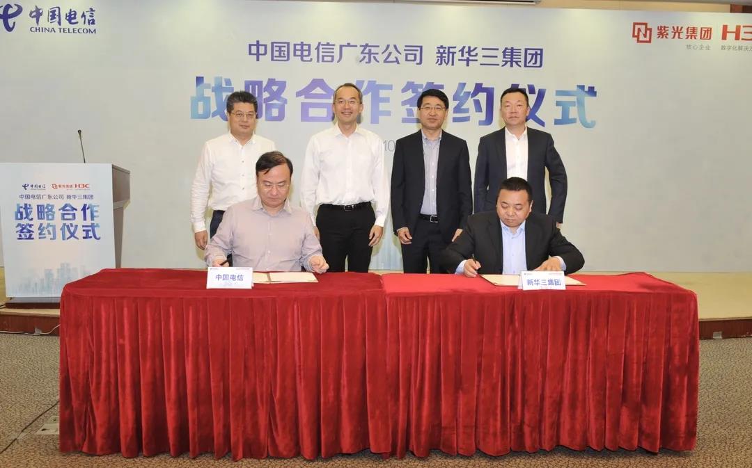 10月20日,中国电信股份有限公司广东分公司(以下简称“中国电信广东公司”)与紫光股份旗下新华三集团战略合作签署仪式在广州举行,双方宣布将建立战略合作伙伴关系,携手共同打造战略协同、优势互补、资源共享、共生发展的智能信息服务业务生态链。中国电信广东公司党委委员、副总经理杨小丰,新华三集团副总裁、安全产品线总裁孙松儿代表双方签署战略合作协议。中国电信广东公司党委书记、总经理唐珂,中国电信广东公司党委委员、副总经理张国新,紫光集团联席总裁兼新华三首席执行官于英涛、新华三集团中国区副总裁何宁等见证双方签约。