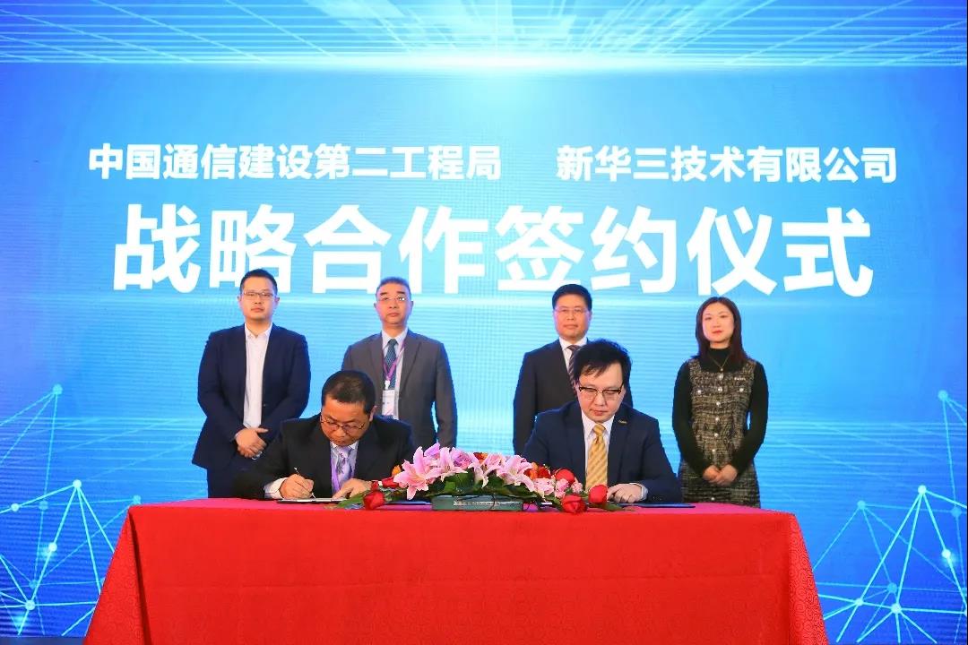12月4日,由中国机电产品进出口商会和紫光股份旗下新华三集团联合主办的“数字技术助力海外新基建高峰论坛”在杭州落幕。会议期间,新华三集团与中国通信建设第二工程局有限公司(以下简称:中国通建二局)达成战略合作。新华三集团联席总裁、国际业务部总裁黄智辉,中国通建二局副总经理王大钢为战略合作见签,新华三国际业务部副总裁解放和中国通建二局海外拓展分公司总经理刘挺代表双方签署合作协议。