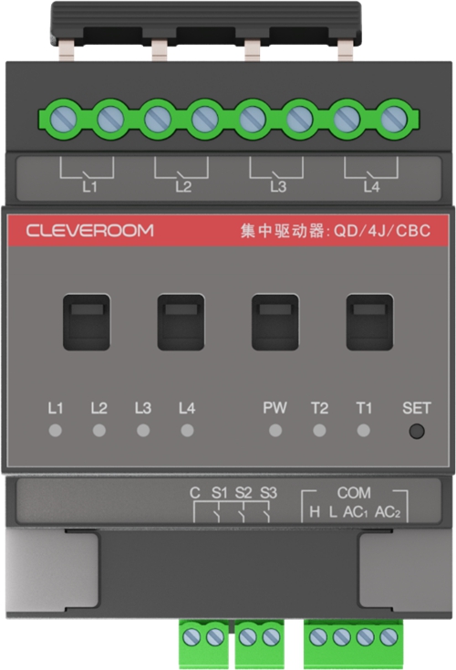 集中驱动器有多种规格,包括4/6路继电器驱动器、可控硅调光驱动器、0-10V调光驱动器,每个可以提供4-6路驱动输出(驱动对象包括灯光/电器、电动窗帘、电控锁、中央空调、新风、地暖等)。