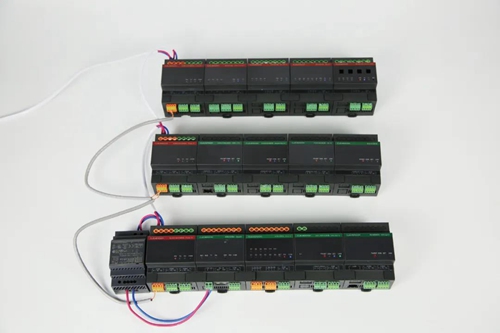 科力屋2020年新上市的系列卡轨式模块也提供有总线接线端子,更重要的是,还创新性提供两个总线桥接口,通过插接总线桥接件,可快速连通相邻模块的总线,极大提升系统总线接线效率(比传统的端子接线至少快20倍以上)和电箱美观度。