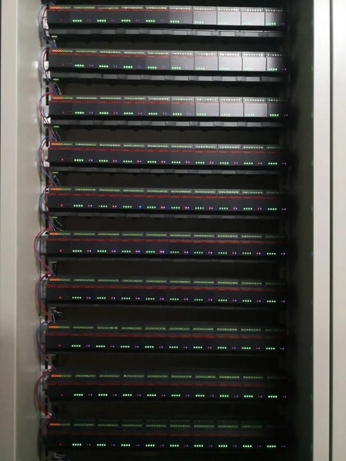 电箱内模块的接线:对于每一排模块,只需要通过总线桥接件插接,即可快速连通相邻模块的系统总线;上下排模块之间,只需要连通电源&总线分接模块的COM通讯口,整个电箱就完成了各模块的总线通信连接。
