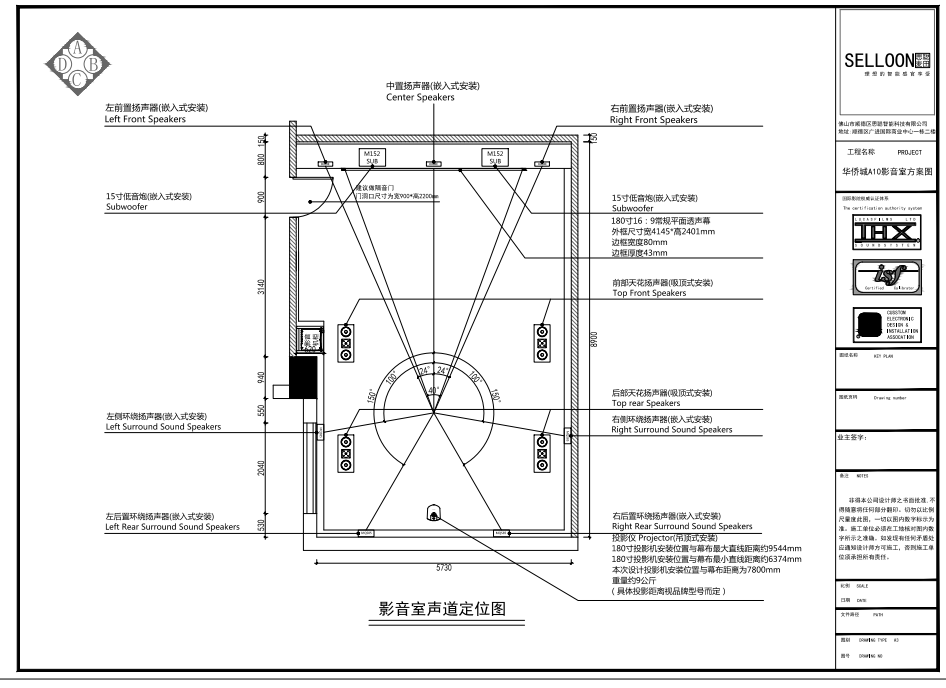 空间信息:影音室位于地下室,长宽高为8900:6190:3100mm。