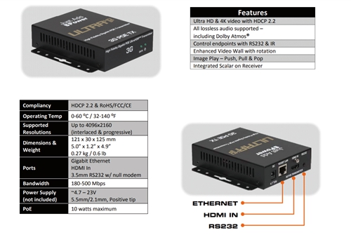 视频矩阵支持4K超高清分辨率,支持HDMI 2.0和HDCP 2.2,无损多声道音频格式中包括杜比全景声Dolby Atmos。接收器会自动调整视频传输图像的屏幕大小进行显示器的适配。