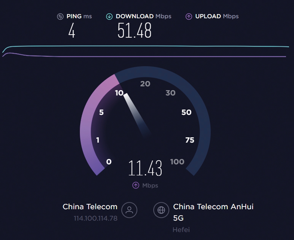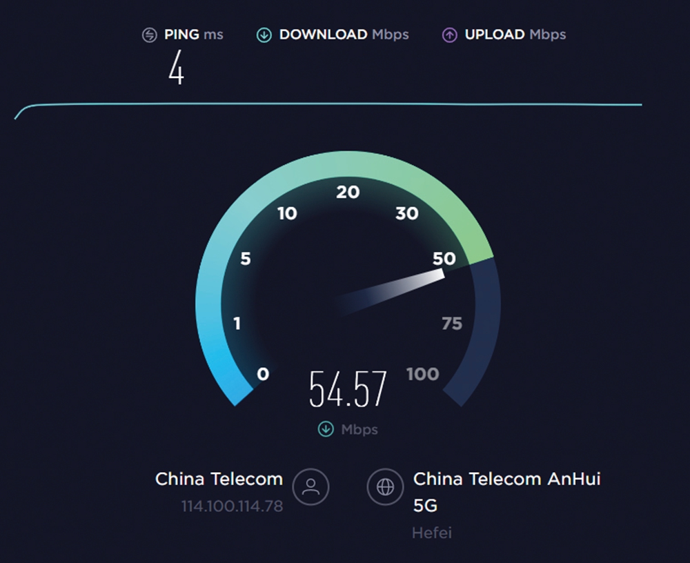 2.4G终端协商速率理论最高可达300Mbps,实际测试结果在100-150 Mbps,5G频段协商至最高867 Mbps理论值,实际测试结果在400~500 Mbps。