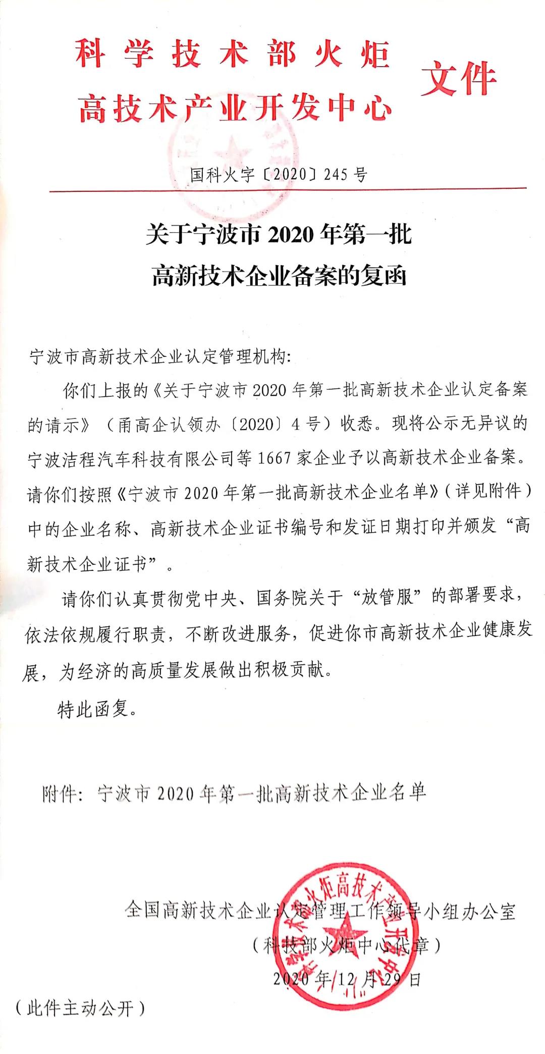 除此之外,在近期公布的宁波市2020年第一批高新技术企业名单中,宁波向往智能科技有限公司也喜获高新技术企业的称号。事实上,早在2014年向往就已荣获高新技术企业,至今已荣获多年。