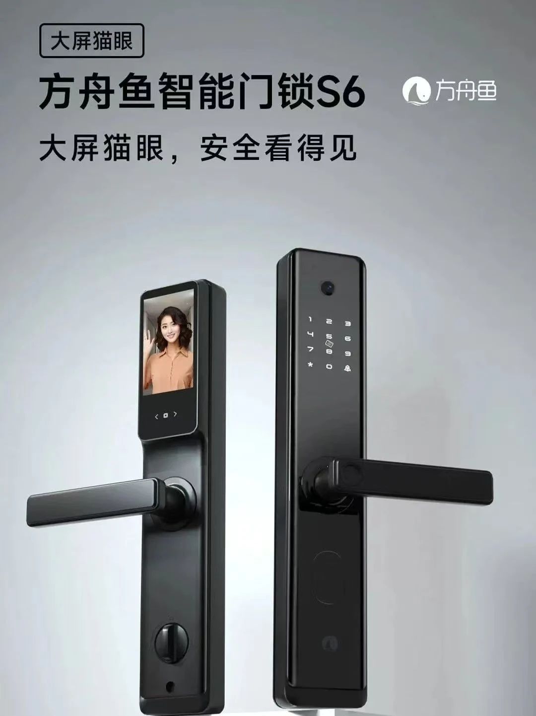 联恒智控方舟鱼智能门锁S6,千元级高性价比产品,支持非标锁体改造,配备4英寸大屏猫眼与米家生态联动,实现虚位密码、胁迫报警等功能。