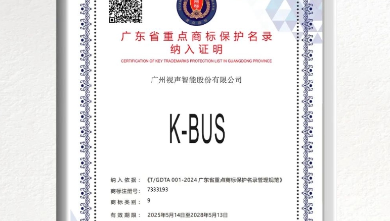 GVS的“K-BUS”商标成功入选,与华为“鸿蒙”、腾讯“QQ”等知名品牌共同跻身省级知识产权保护第一梯队。