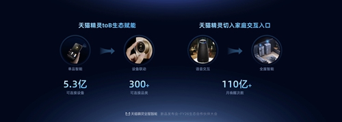 截止目前,天猫精灵品牌已服务中国超过4000多万家庭,每月的用户唤醒次数超过110亿次,在持续扩大生态合作中,与超过1800个品牌、5.3亿以上的设备建立连接。