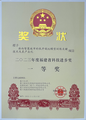 近日,狄耐克与厦门大学、南强优视(厦门)科技有限公司、厦门身份宝网络科技有限公司、厦门地铁创新科技有限公司合作完成的《面向智慧城市的低开销AI模型训练关键技术及产业化》项目获颁“福建省科技进步奖·一等奖”。