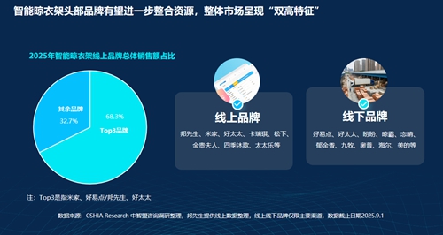 根据CSHIA Research 中智盟咨询调研整理发现,2025年以来,线上Top3企业已占据 68.3%的市场份额,分别是米家、好易点&邦先生、好太太,以他们为代表的头部品牌,市场集中度持续抬升。整体市场呈现“双高特征”,线上高增长、品牌高集中,两级分化明显。