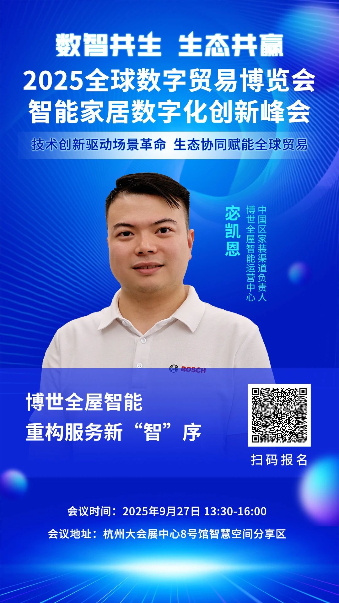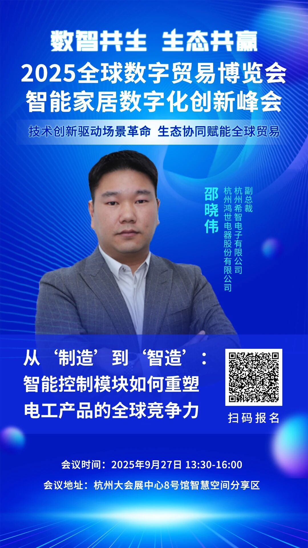 展会同期,以数智共生•生态共赢为主题的“2025全球数字贸易博览会•智能家居数字化创新峰会”将于9月27日下午在杭州大会展中心8号馆智慧空间分享区举办。