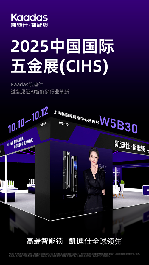 2025/10/05Kaadas凯迪仕 10月10日—10月12日,上海新国际博览中心展位号W5B30。 Kaadas凯迪仕,邀您见证AI智能锁行业革新! CIHS 2025 免责声明:凡注明为其它来源的信息均转自其它平台,目的在于传递更多信息,并不代表本站观点及立场。若有侵权或异议请联系我们处理。