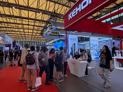 开展首日,科熊智能锁在 W5 馆的展位便凭借鲜明的视觉设计成为现场焦点。展位整体以活力大红色调为主,既传递出品牌的热情态度,又巧妙融入科技感元素,与智能锁产品属性高度契合;纯白色的品牌 Logo 在红色背景的映衬下格外醒目,强化品牌辨识度的同时,也让整体视觉更显简洁大气。更值得关注的是,展位采用开放式空间布局,充分考虑参观动线的流畅性,无遮挡的设计让每一位参会观众都能轻松步入展区,近距离触摸产品、深入体验科熊智能锁的卓越性能,有效拉近品牌与用户的距离。