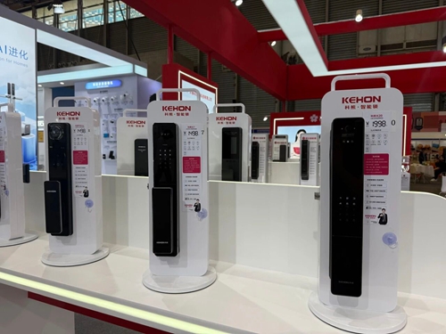 其中,樱花智能锁聚焦高端市场需求,重点展示了融合 AI 交互与智慧屏概念的旗舰产品,同时呈现了在多维生物识别集成领域的深度探索成果,为追求高品质智能生活的用户提供解决方案。科熊智能锁则立足大众市场,充分发挥技术积淀优势,现场展示了人脸识别大屏锁、可视化猫眼锁及经典执手锁三大核心系列产品,以清晰的产品矩阵满足不同用户家庭需求。