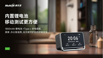 设备主要采用Type-C接口供电,保障多个传感器持续采集空气质量与光照数据。内置1800mAh锂电池,具备良好的移动性,满足用户多场景空气质量检测需求。在实际测试中,设备在典型使用场景下表现出良好的续航能力。
