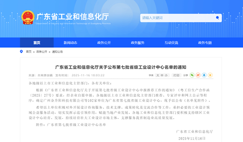 近日,广东省工业和信息化厅发布了关于第七批省级工业设计中心名单的通知,广东瑞德智能科技股份有限公司(股票代码:301135)凭借在智能控制器领域卓越的设计创新能力与产业化实力,成功通过广东省工业设计中心的认定(名单序列第61号)。