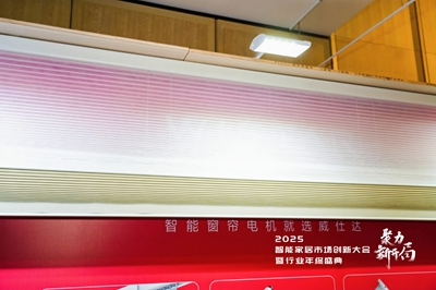威仕达携直流大日夜帘窗帘系统亮相。这款窗帘系统可以做到宽4米、高2.5米的效果,电机扭力大,整体运行流畅,适合多种场景。现场,威仕达还带来了常规的卷帘电机,还有双子星电机以及迷你式的小电机,当安装完毕之后,可以达到隐藏式的效果。此外,威仕达还带来了成品帘系统,静音运行,提升用户的居家生活体验感。