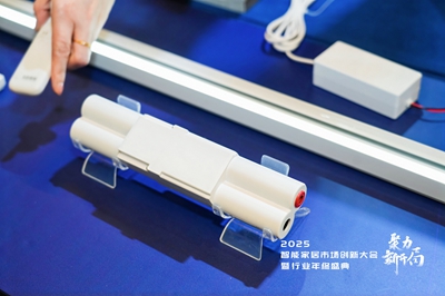 光韵智能携氛围灯窗帘电机亮相现场展示。它采用圆形设计、驱动一体化设计、电机与传动箱采用金手指触点(抗氧化、防腐蚀)有良好的导电性能。支持AI语音控制、米家APP及小爱音箱控制、手持遥控器控制、墙面遥控器控制、干接点86盒开关面板控制。
