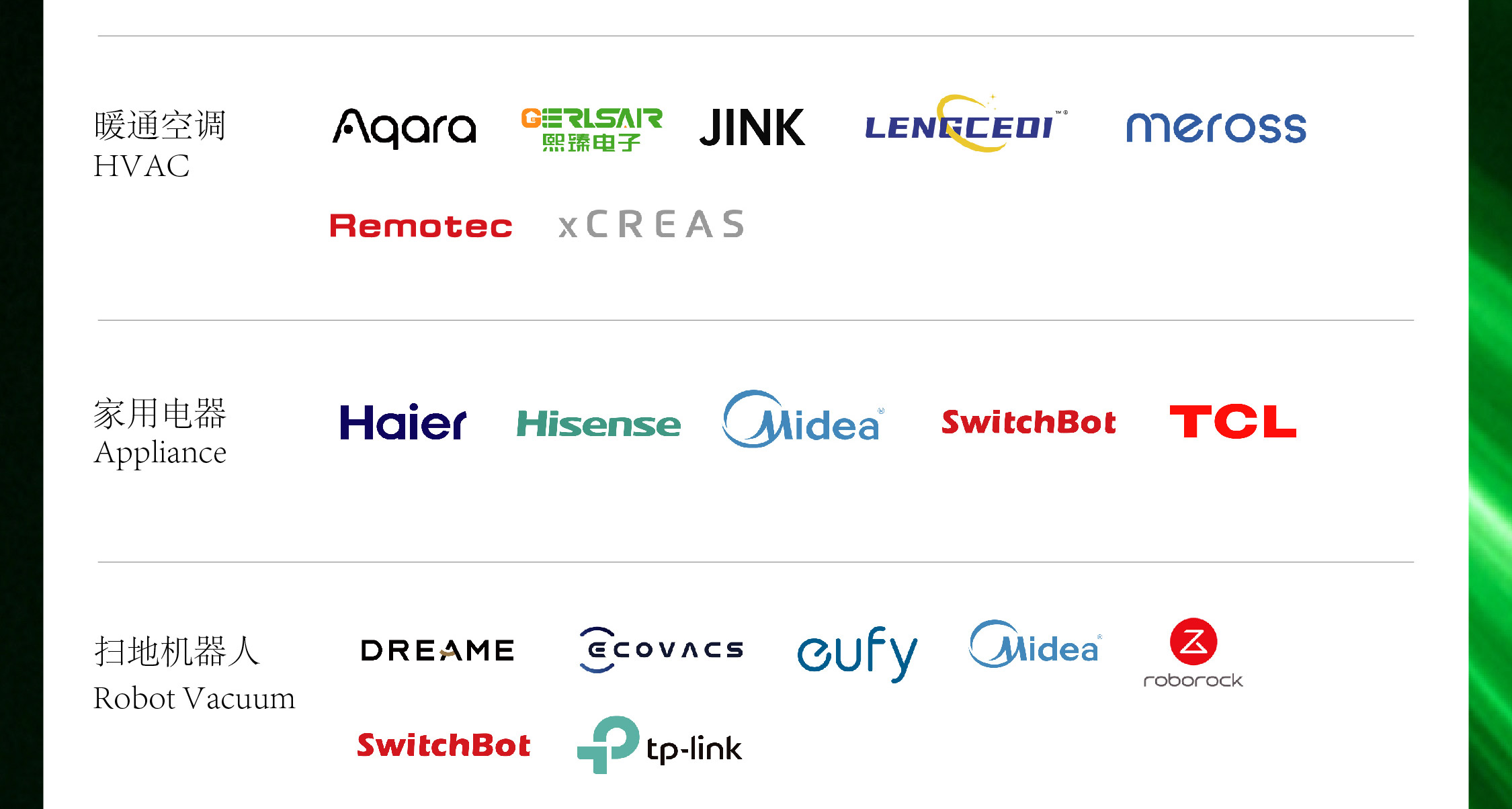 品牌数量增长:支持Matter的中国相关品牌数量从去年的98家增长至140家,增长率超过40%。