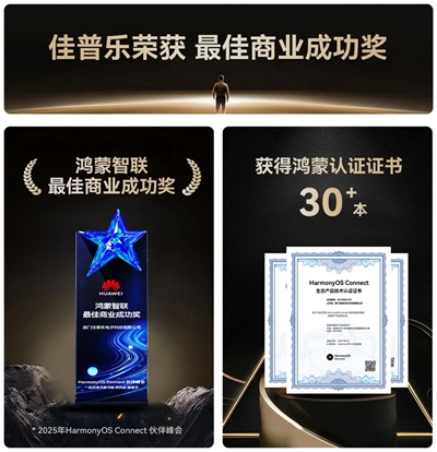 自2021 年起,佳普乐便成为鸿蒙智联合作伙伴,双方在技术研发、场景创新、用户体验等多个维度展开了深度合作,共同推动着智慧卫浴行业的变革与发展。