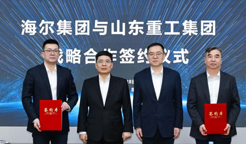 1月28日,海尔集团与山东重工集团在青岛签署战略合作协议。海尔集团党委书记、董事局主席、首席执行官周云杰,山东重工集团党委书记、董事长王志坚进行座谈交流并见证签约。海尔集团副总裁、海尔集团政企事务总经理、海尔智家中国区总经理赵弇锋,山东重工集团党委副书记、董事叶建军代表双方签约。