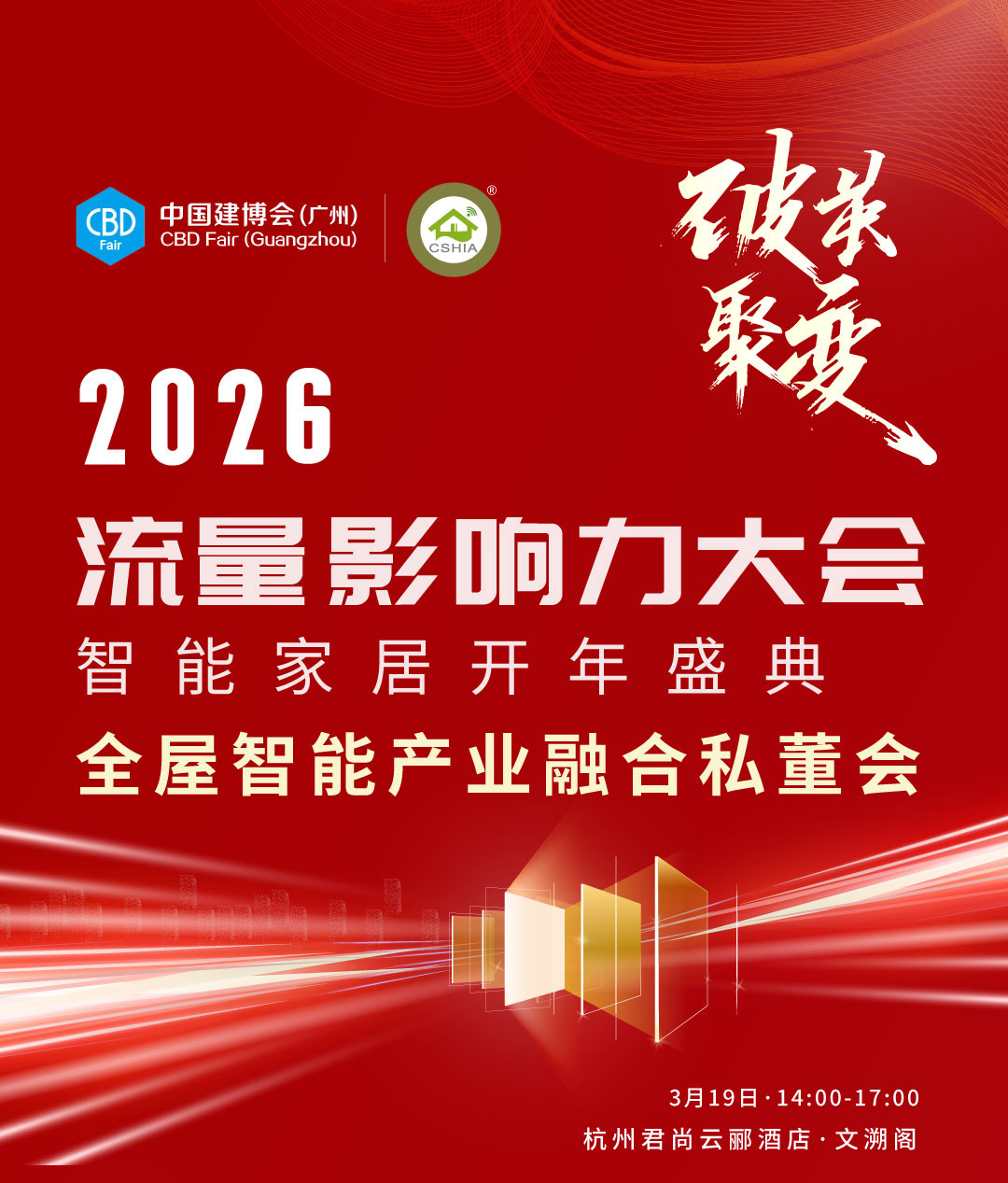 当AI、物联网与大模型深度渗透,泛家居产业正从单品智能迈向全场景融合,智慧人居成为行业核心方向。2026年3月19日,2026流量影响力大会暨智能家居开年盛典将在杭州君尚云郦酒店盛大举办,同期将重磅召开破茧•聚变——全屋智能产业融合私董会,携手广州建博会,以产业协同破局,共推智装融合与全场景落地,激活全屋智能高质量发展新动能。