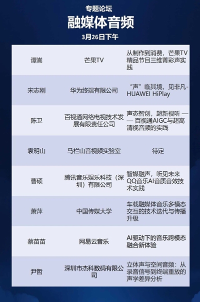 华为终端有限公司、科大讯飞股份有限公司、马栏山音视频实验室、德国弗劳恩霍夫应用研究促进协会(Fraunhofer-Gesellschaft)、腾讯音乐、小米集团、SENNHEISER MOBILITY、深圳市韶音科技有限公司、索尼中国有限公司、珠海莫界科技有限公司、诠视科技、深圳市亿境虚拟现实技术有限公司、深圳市天键智能有限公司、苏州清听声学科技有限公司、吉利汽车等国内外知名企业及机构代表重磅亮相,围绕AI赋能智能音频产品升级展开深度交流与前瞻分享。