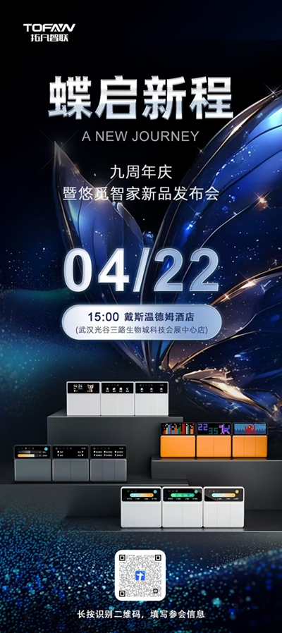 历经九载深耕,拓凡智联始终以创新为芯,引领智能家居行业迭代升级。值此九周年庆典之际,拓凡智联正式官宣,将于4月22日15:00在武汉光谷三路生物城科技会展中心店戴斯温德姆酒店,举办九周年庆暨悠觅智家新品发布会。