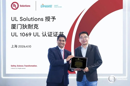 2026年4月10日,上海CMEF展会现场传来喜讯——全球应用安全科学专家UL Solutions,正式向狄耐克旗下子公司——厦门狄耐克物联智慧科技有限公司授予UL 1069认证证书,标志着狄耐克智慧病房医护对讲系统,成功通过国际高标准安全检验,为公司全球化布局与国内智慧医院建设,筑牢合规与品质根基。